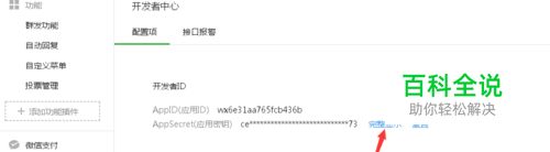 登录公众号,点击右栏下边“开发者中心”条目,如图