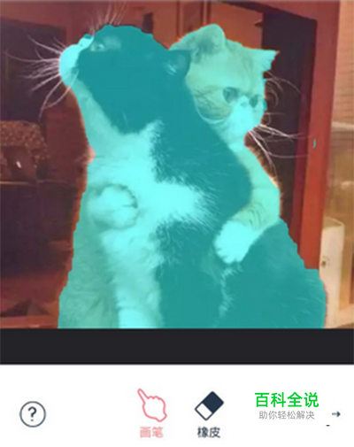 4.接下来我们就要进入图库打开所需要抠的图片。在【画笔】状态下我们可以用手指在画面上涂抹,被选中成为红色的部分即会被抠出来,成为前景。