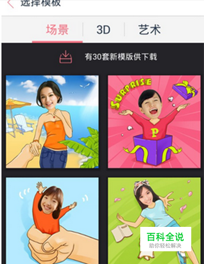 天天p图给图片换背景的方法: 操作关键点:先将要更新背景的部分抠图,再将新的背景图添加进去。具体看下面的操作步骤! 首先,我们就按照一般的抠图方式完成抠图,具体步骤如下: 1.下载并安装天天P图这款APP应用。 2.接着我们便可以打开软件了。进入下图所示界面,我们可以看到一个非常可爱的麋鹿图标(小编手机上的版本为最新版及圣诞版,前后不同版本略有差异,只要找到“魔法抠图”即可),点击【魔法抠图】,进入抠图页面(如首图)。 3.根据指示,我们首先要选择一个模板,为做示范,小编今天就选择了第一种【场景】。
