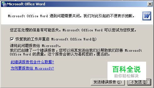 删除微软输入法3.0。 Word打不开,显示上面的对话框,在点击了“不发送”按钮后将关闭。再次运行 Word,将询问是否以安全模式启动 Word。在此如果选择“是”,Word 将进入“安全模式”。在这种模式下,Word将仅显示空白窗口,需要再手动打开文档方可显示。如果选择“否”,则Word又将弹出错对话框,陷入死循环。 但是,除 Word 外其他 Office 组件均可正常运行。 依此操作,问题解决!!! 首先找到下面这个文件夹: C:\Documents and Settings\Administrator\Application Data\Microsoft\Templates 会看到“Normal.dot” 这个文件,这是公用模板文件,应该是损坏了,直接将其删除,排除故障。 如果找不到这个文件夹,可将C:\Documents and Settings\Administrator\Application Data\Microsoft\Templates复制粘贴到地址栏即可找到 normal.dot这个文件。