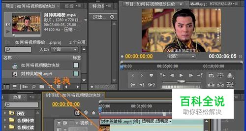 导入素材之后用鼠标把素材拖拽到视频1轨道上。