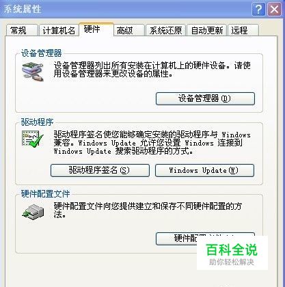 解决方法:右击“我的电脑”选“属性”,打开“系统属性”对话框,切换到“硬件”选项卡