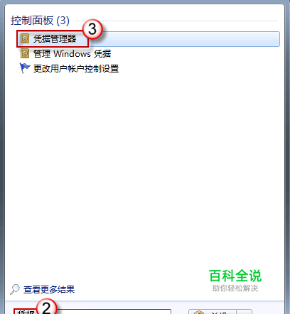 按“开始”按钮,在开始搜索框中输入“凭据”进行搜索;单击打开“凭据管理器”。