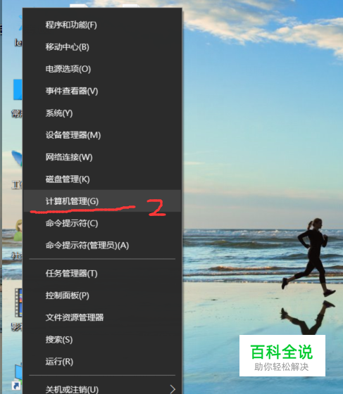 在电脑桌面选择开始菜单图标 ,单击右键,选择“计算机管理”;