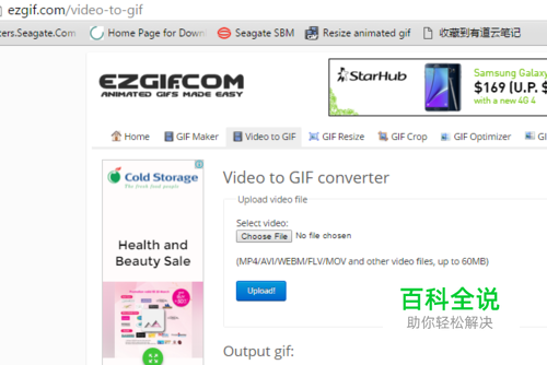 然后去下面的网站。 点击Video to GIF菜单 点击Choose File选取自己的视频文件。 点Upload上传