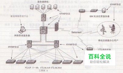 搭建网络管理平台需要在网络管理服务器上安装管理平台软件,并在所有被监控的设备上运行SNMP协议。搭建网络管理平台可以按照下图所示的拓扑图实施。