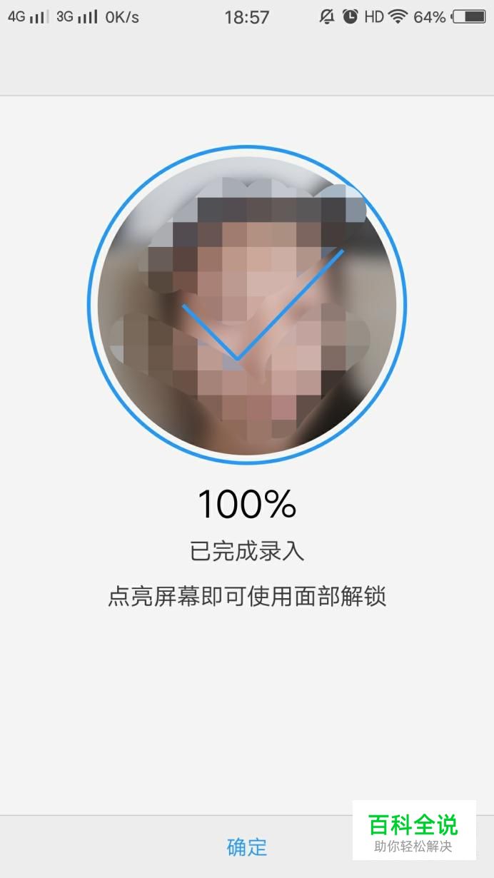会出现一个圆框,将面部对准摄像头,让面部能够完全的出现在圆框中,进行面部信息采集,即可进行面部解锁。