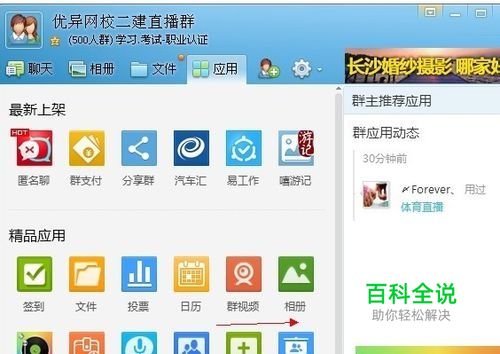 2.进了群后,点击群里的“应用”找到群视频。