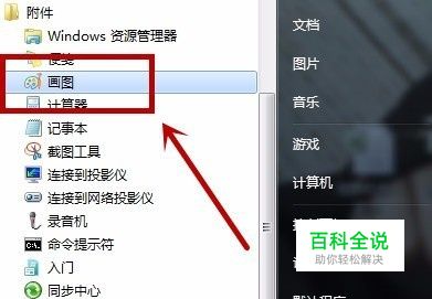 当我们点击这个开始的按钮以后,会跳出来一个菜单,这时我们点击附件里的画图功能。