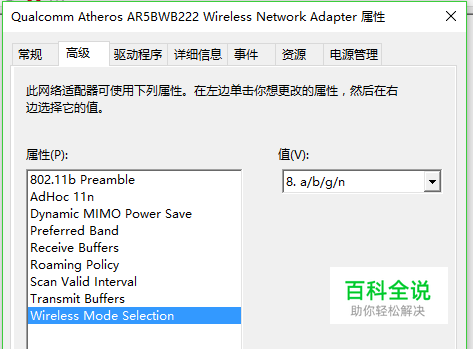 选择“高级→wireless mode selection”