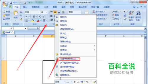 方法一 打开Excel软件以后,单击要划斜线的单击元格,右击鼠标,在单击菜单中单击【设置单元格格式】。