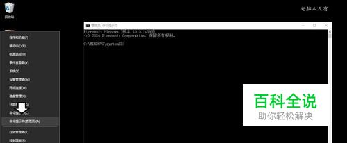 右键点击开始按钮→命令提示符(管理员)。
