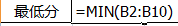 求最低分的方法一样,选中最低分对应的单元格——单击最小值,这里函数所默认的求最小值的范围不正确,虽然结果是一样的,但最好还是重新选择一下最小值的求值范围。重选范围后,按回车键确认,并自动填充后面的数据