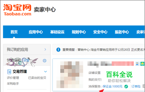 登录淘宝卖家中心,在自己头像旁边可以看到消保服务:保证金额,点击进入。
