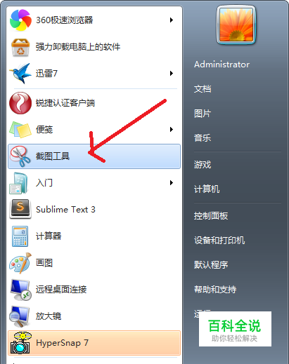 安装系统后,打开开始菜单下下的截图工具