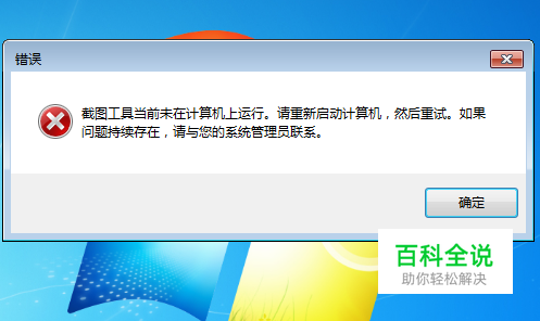 但是,会出现如图所示的警告窗口。“截图工具当前未在计算机上运行,请重新启动计算机,然后重试。。。”重新启动以后,证实还是无法使用。。