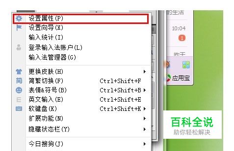 打开搜狗输入法,右键点击输入法条的S,选择第一个设置属性。