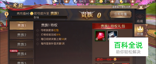 VIP12:10000 可获得贵族专属标识、贵族橙色标记、交易上限20次、玫瑰阁次数、每次招财550次、打怪经验加成、每日捕捉坐骑增加上限次数等等。