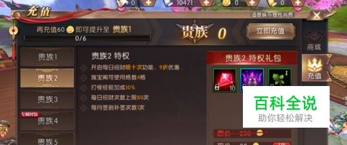 VIP3:80 可获得贵族专属称号、蓝色贵族标识、增加交易上限10个、每次招财110次、每月补签2次、打怪经验加成等等。