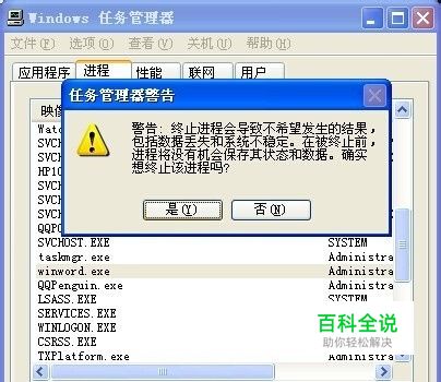 点击右下角结束进程,在弹窗里点击“是”。