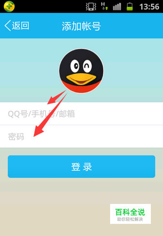 2. 安装完毕之后,打开手机版QQ,在登陆页面输入账号+密码进行登陆即可。