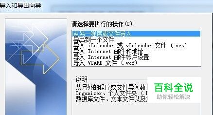 打开Outlook,点击文件-导入和导出,出现导入和导出向导,选择“从另一程序或文件导入”。