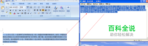 我们可以把全部的内容复制到TXT文本里,然后再重新黏贴到word编辑。这样背景色就会简单的去掉。如图所示