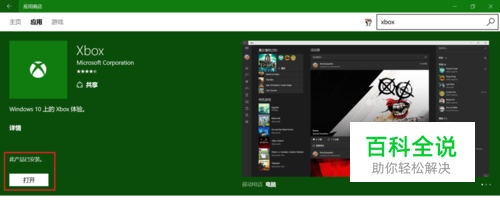 我寻思该屏幕录制功能的设置应该是在XBOX里的,一般来讲XBOX是内置在Win10系统里的,我想找到XBOX应用但是一时是找不到的,我打开“商店”应用是可以查找XBOX的,但发现我已经安装了的,直接打开就可以的。