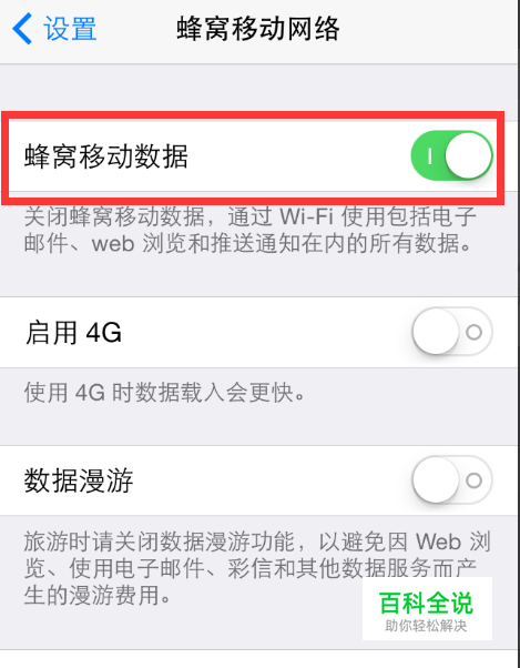 我们打开蜂窝移动网络可以查看是否给予“设置”网络权限,如果只有WLAN权限,那么只能无线连接,如果只有蜂窝移动网那么只能数据连接,如果两者都有那么代表都可以连接。