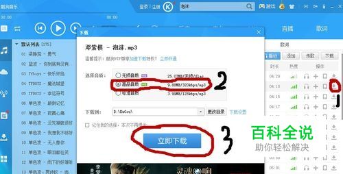 点击右侧的下载图标,在弹出的下载对话框中选择高品质, 如果要下载无损音质需要登录,而且一般的刻录软件大多不支持无损格式,需要转换格式,所以建议选择高品质。接着点击立即下载。