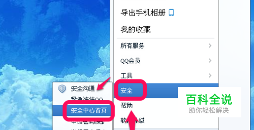 首先,我们打开QQ,点击下方 QQ的菜单图标——》安全——》安全中心首页,如图。