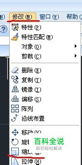 可以点击缩放命令,也可以点击修改,下拉有个缩放,或者可以输入SC回车执行缩放命令。