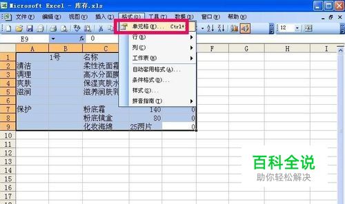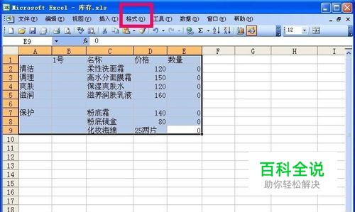 首先打开制作好的Excel工作表,然后选中要打印的区域,再点击窗口上面的格式,如图所示: