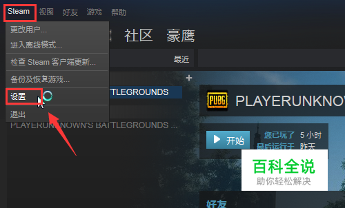 点击左上角的steam,弹出下拉菜单,选择设置,如图所示