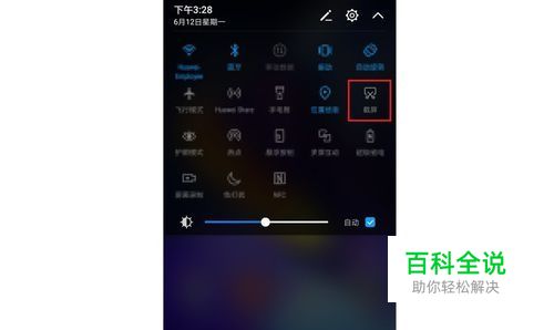 从状态栏处下滑,打开通知面板,然后点击截屏符号进行普通截屏。