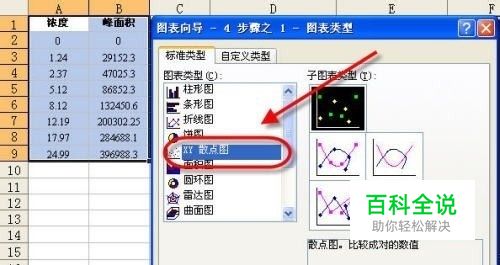 选择成对的数据列,将它们使用“X、Y散点图”制成散点图。