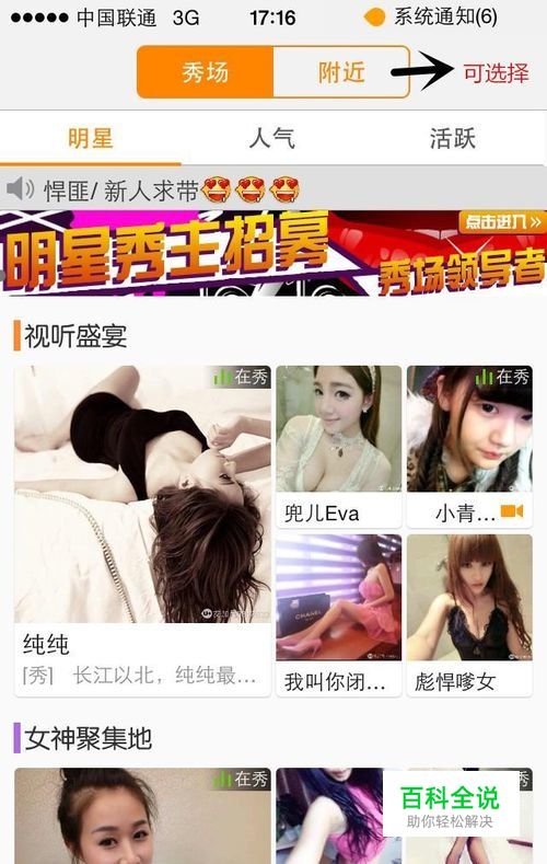 选择秀场或者附近,会出现用户的头像列表。