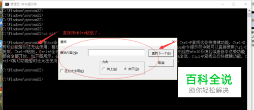 win10的dos命令提示符中就可以直接使用Ctrl+C复制、Ctrl+V粘贴、Ctrl+A全选、Ctrl+F查找这些快捷键功能,Ctrl+X剪切功能暂时还无法使用,相信在win10系统后续更新中这些功能都会全部开放,如下图所示: