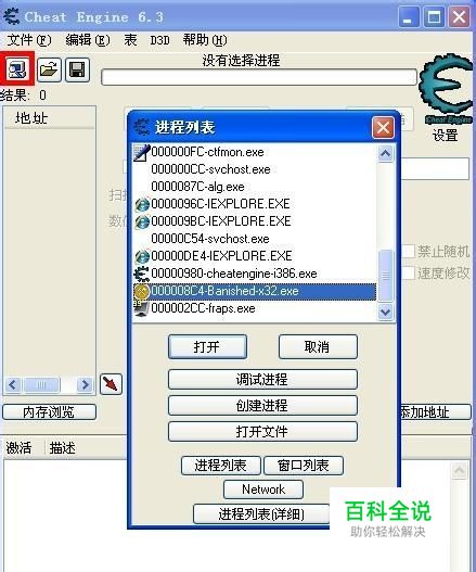 以Wdinwos XP下使用Cheat Engine 6.3修改游戏Banished为例