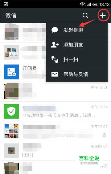 打开微信,然后右上方的“+”图标点一下弹出“发起群聊”的功能,发起群聊。