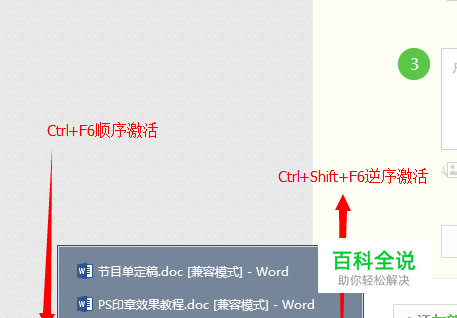 按 组合键 Ctrl+F6 或 Alt+F6 ,word会顺序激活下一个文档并加载到word程序中;同理,按 Ctrl+Shift+F6组合键,word就会反序执行。
