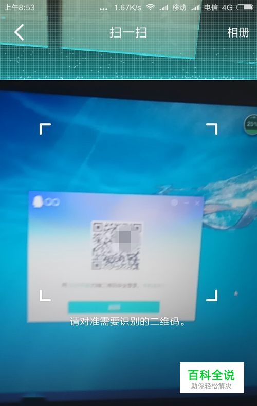 然后手机开始出现扫描状态,你将手机上的扫描框对准电脑上的二维码扫描后,即可登录QQ上网。
