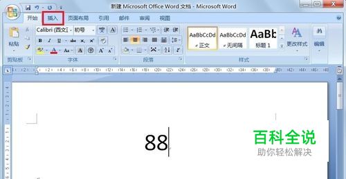 打开一个Word,(此时设定要求88度),鼠标闪烁标志放在88后面,点“插入”。