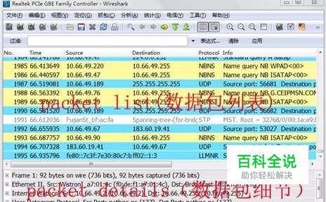 准备工作:打开Wireshark软件,登录qq。 选择抓包,打开qq与网友聊天,过一会停止抓包。 可以看到Wireshark的主窗口如下,它由3个面板组成,从上到下依次是packet list(数据包列表)、packet details(数据包细节)和packet bytes(数据包字节)。