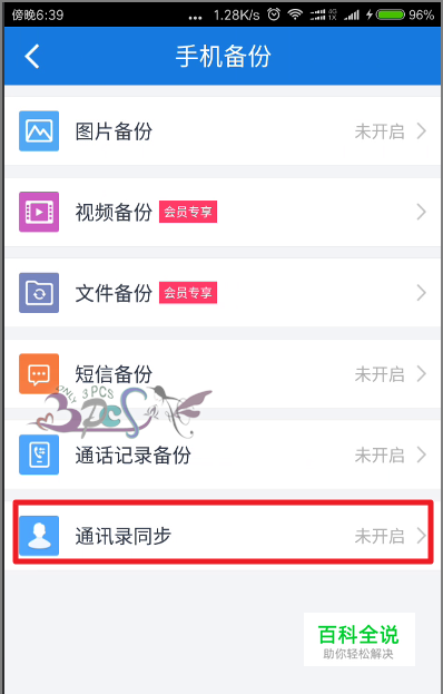 我们只能在开启百度网盘的手机通讯录备份,即同步手机联系人。