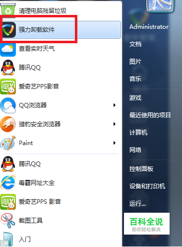 是不是上图中的软件管家看的你眼花缭乱。 首先,说说有【软件管理】的用户。 选择你电脑中的软件管家,我这里的是这一款。【开始】—【强力卸载软件】