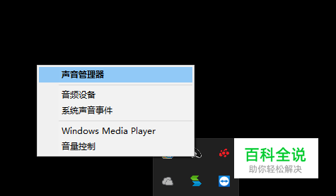 选择左下菜单栏向上的箭头,右键小喇叭,点击声音管理器