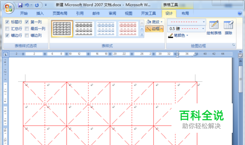 我们在田字格的基础上,将光标定位在第1个单元格,再点击菜单栏设计--表样式--边框,在弹出的下拉栏选择斜下框线,再点击确定即可。