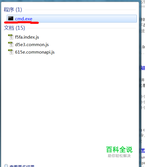 1.桌面左下角windows图标--搜索框内输入cmd,结果如图所示,点击cmd.exe