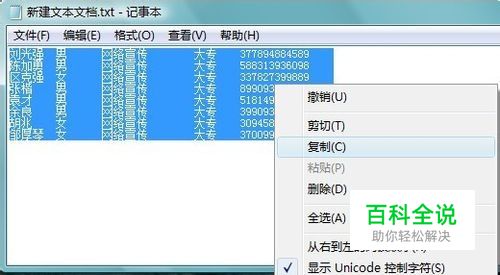 打开要转换的TXT文件,并复制需要转换的数据内容(如图)